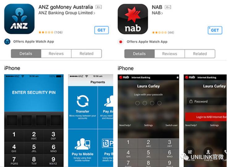 贸易银行App:Commonwealth、ANZ、NAB or Westpac,余额查询、转账之类的功用。