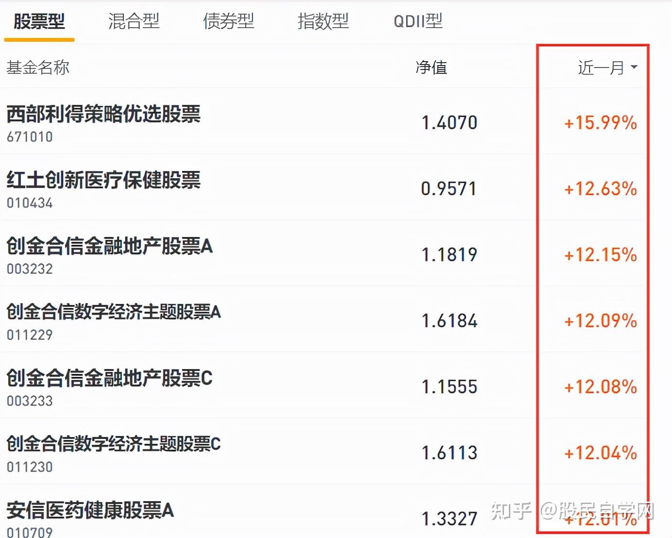 起首是【业绩预期排行】上,有优先股型、混合型、债券型等公募基金类别,然后按照你选择的天数参考,好比近一个月、或者是近三月,本年以来等等天数甄选出,净值从高到低摆列