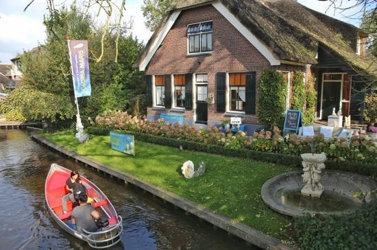 各人觉得费事,可能是因为羊角村下了火车以后,还要坐大巴车去。我们在火车站那儿看到了汉字的告白牌,几个中国人把火车站的商铺承包下来了,能够在他们那儿就能够拼车和买船票。一起头有点担忧,后来觉得也没什么关系,就买了55欧的套票,有荷兰司机开车送我们过去了,到了游船的地点,也有中国人告诉我们怎么开船,怎么玩。固然套票是1个小时的,一般玩得两个小时,不外多出来的一个小时要多花15欧。不外仍是很便利的。