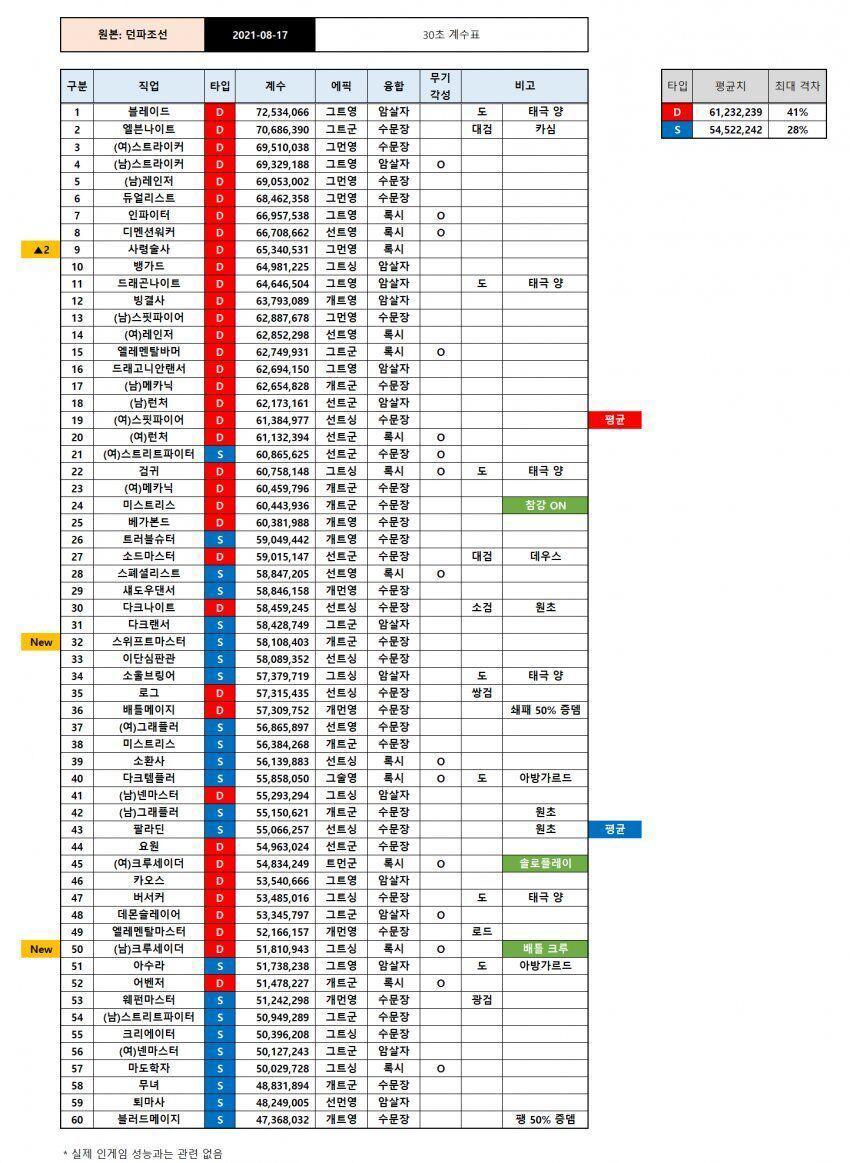 如图所示,此表为colg一位大佬从头整理的鞘花30sC统计数据