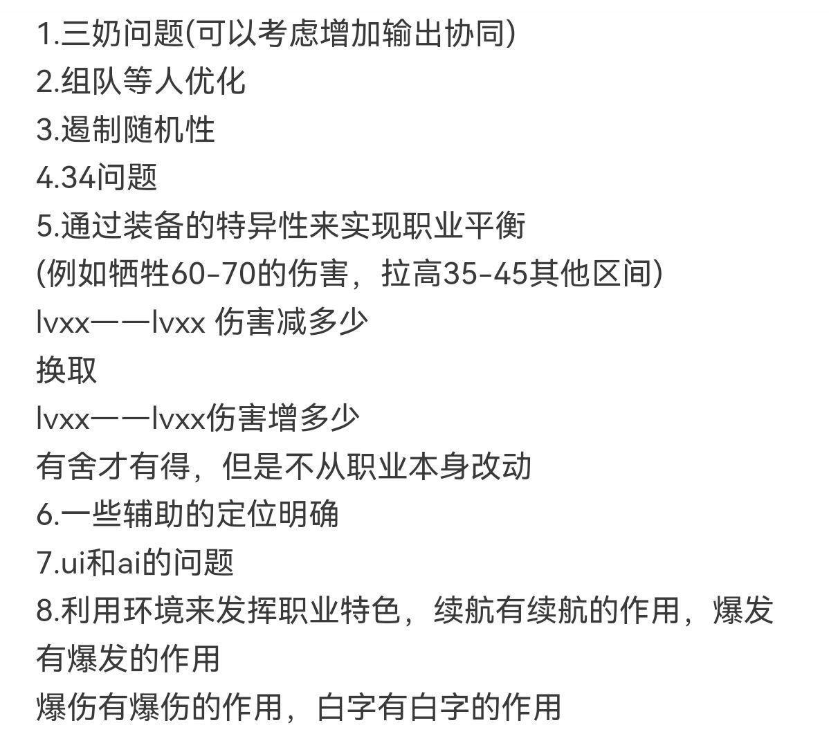 提及了奶不会再做两套兵器配备,而且增加奶的输出。