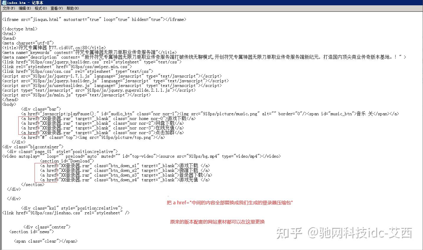 他们进入index.htm文件用记事本关上,把阅读链接替代成他们生成的登录器