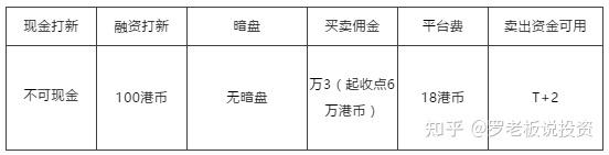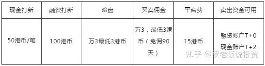 费用:现金申购50港币(每月三次收100返50),交易佣金万3,更低18港币