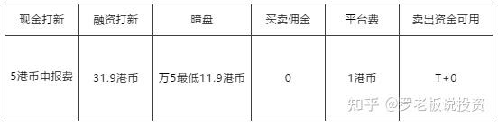 费用:9月30号之前现金申购免费。平台利用费15港币,佣金5港币/笔