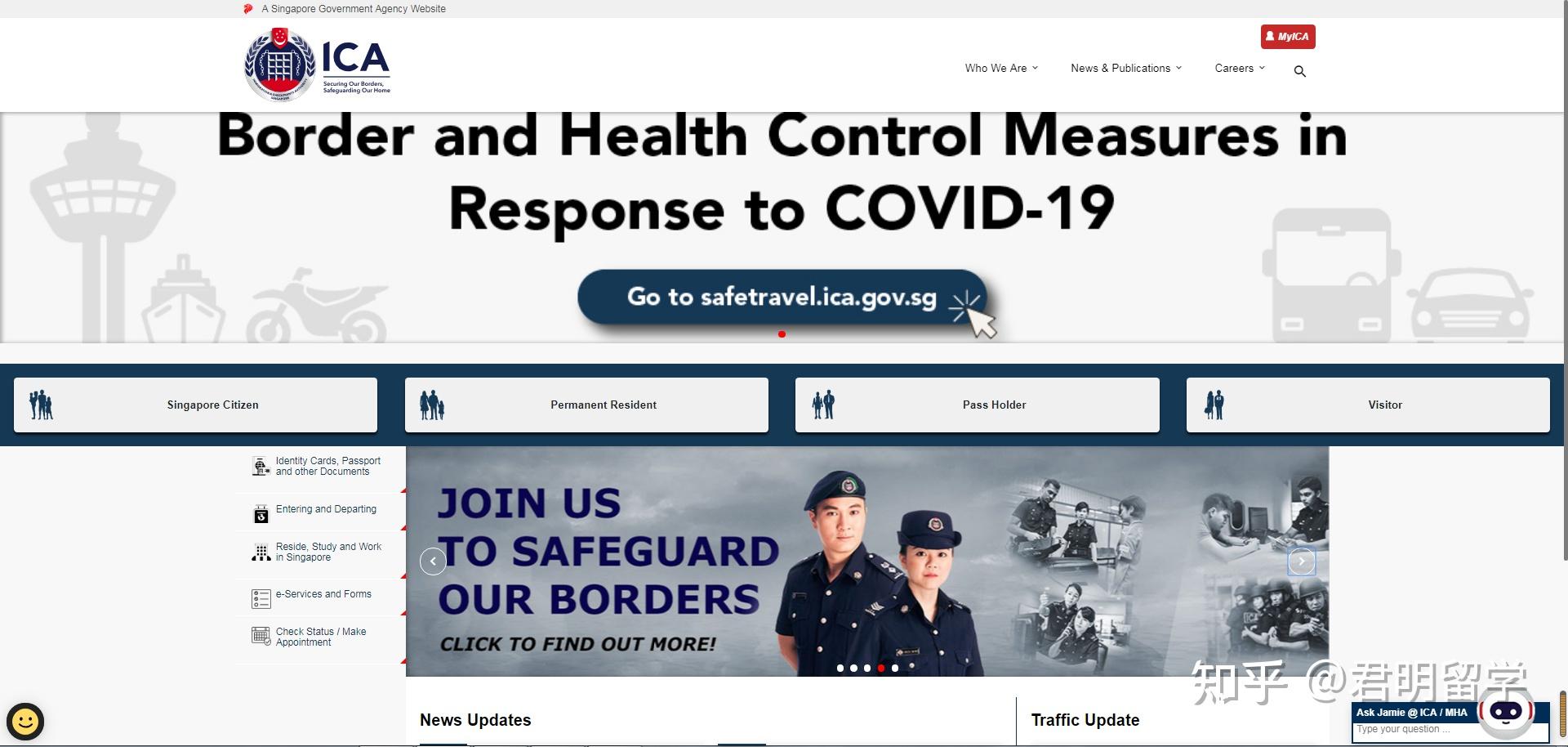 登录ICA官网https://www.ica.gov.sg/,点击左侧“e-Services and Forms”栏目,选择Students Pass