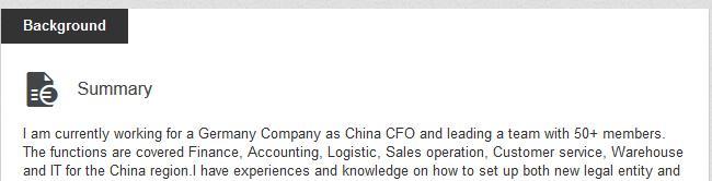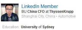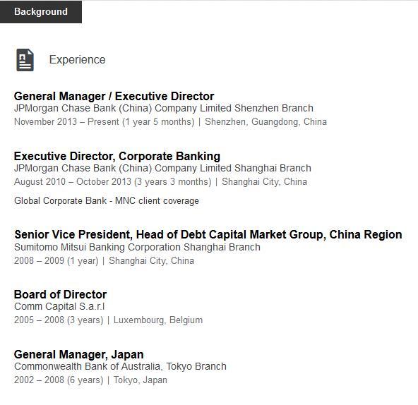 Profile 1 不会看英文我跟你翻译呵呵,深圳摩根大通行长,是悉尼理工学院大学结业澳大利亚CBA工做经历的海归。