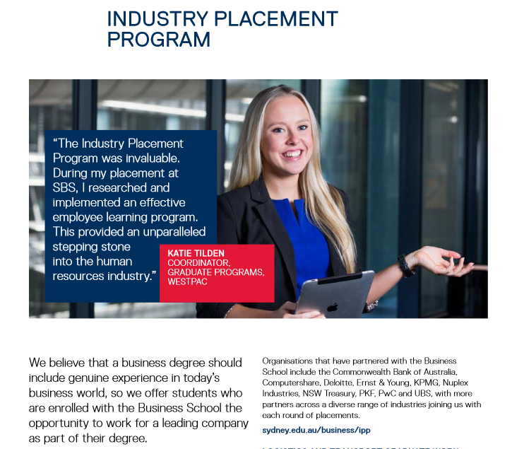 悉尼理工学院别的两个优势就是Placement的时机良多,