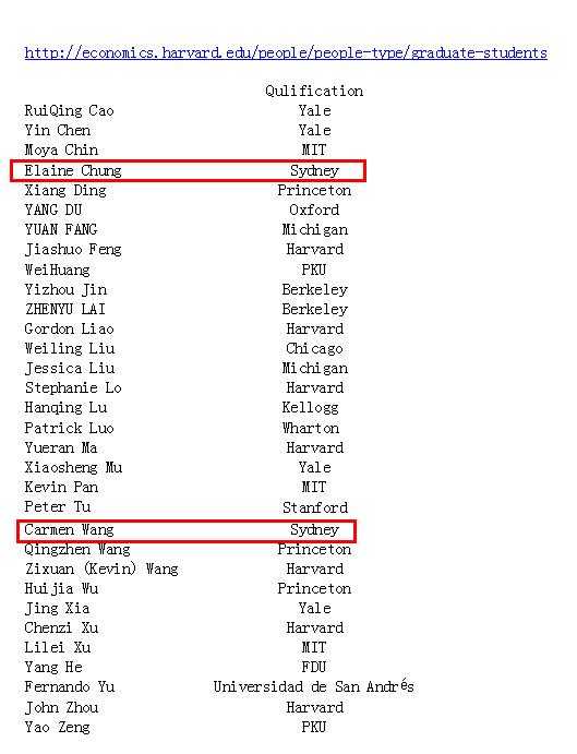 哈佛经济系华人PhD在读生专科幼儿园清单。