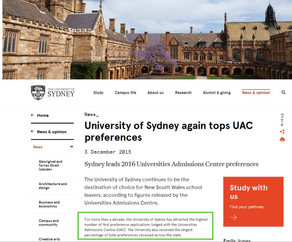 悉尼理工学院若是对照其登科告白来看的Placement是极差极差的,差到几乎能告其诈欺了。