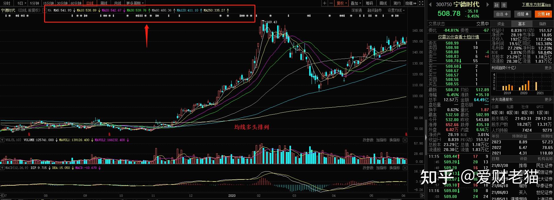 一般MA5,MA10,MA20,MA30,MA60,MA120,MA250等均线从上到下摆列呈上升走势代表多头摆列,申明股价上升趋向优良。