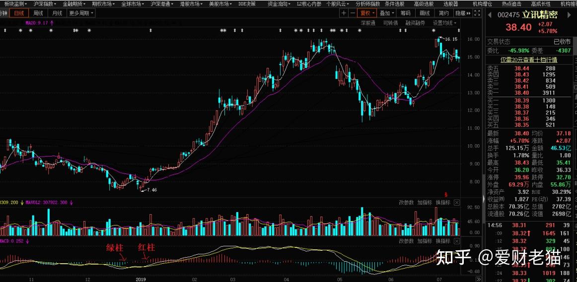 详细的数学上计算那不外多介绍,感兴趣的能够下去再认真领会,那里次要讲怎么运用。MACD那个目标我们次要看两根线和一柱一轴: