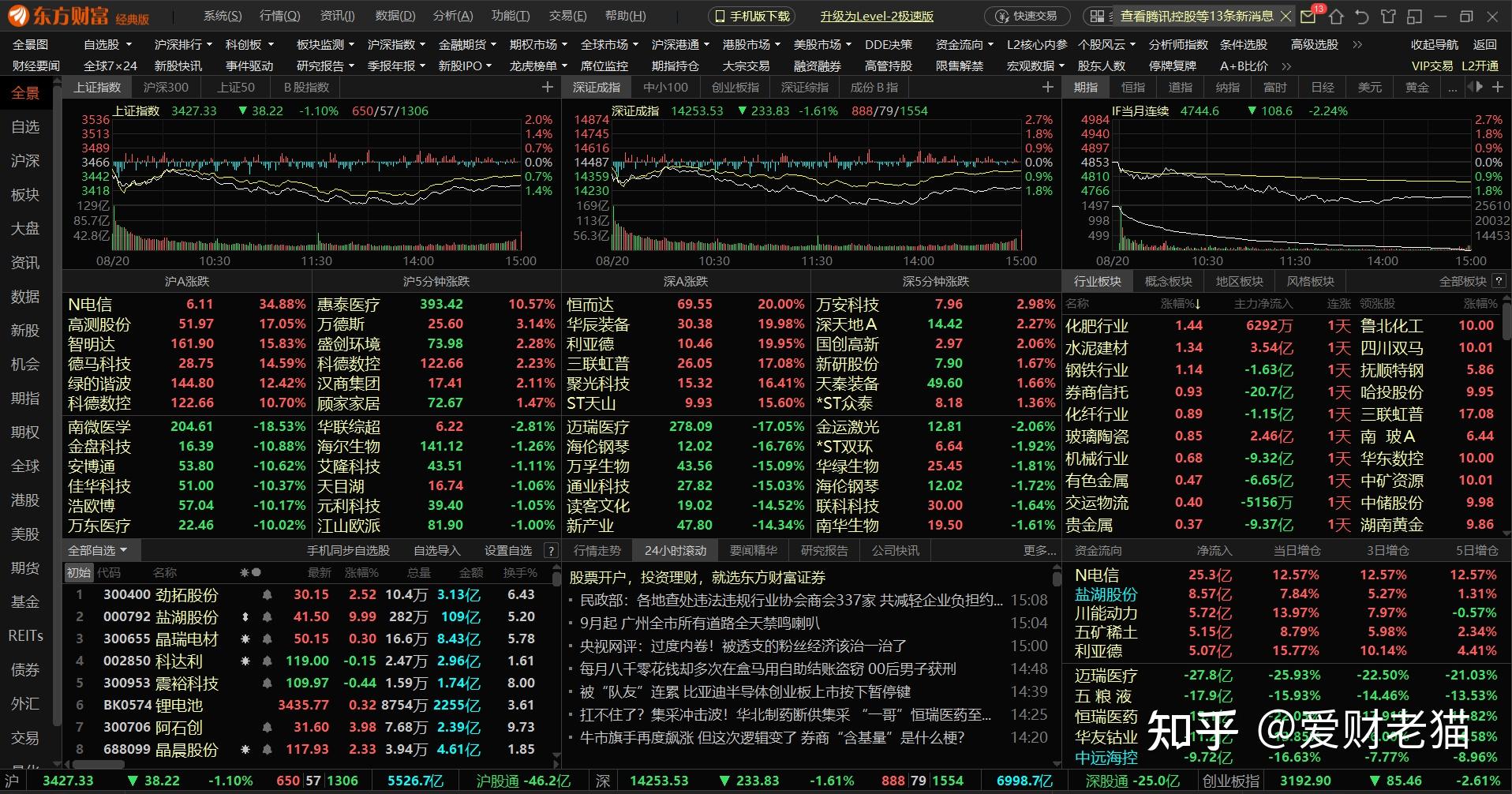 市场上比力出名的是东方财产和同花顺,老猫用得比力多的是东方财产客户端。界面如图所示