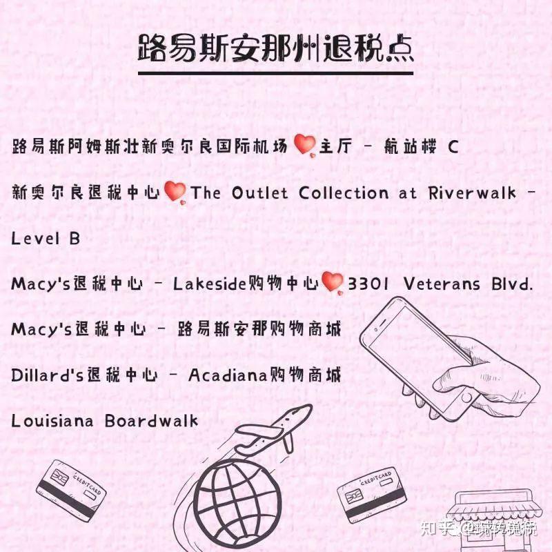 在路易斯安那州超越1000家商场为国际旅客供给购物退税办事,好比Saks Fifth Avenue, Best Buy, Macy’s, J.C. Penney, Gucci, The Gap, Sears, Wal-Mart, Sam’s Club, Coach等。在新奥尔良和巴吞鲁日地域的大大都次要商场都是免税区。拉夫·劳伦、COACH、契尔氏、苹果电子产物都是最受中国旅客喜爱的品牌,建议在购物税较低的处所购置。️同时,你也能够去奥特莱斯折扣中心,那里的品牌繁多,格式或许不敷新颖,但价格必定是令你满意的。此外,洛杉矶高地中心内的DFS也是中国旅客的购物胜地。在美国购物,战略有二:“黑色礼拜五”(Black Friday)、劳动节(Labor Day)那些大型节庆的折扣怒潮,免税州及免税店。那两大战略当然是王道,但若是你走过路过那两个可退税州,也不要错过退税购物的好时机哦。