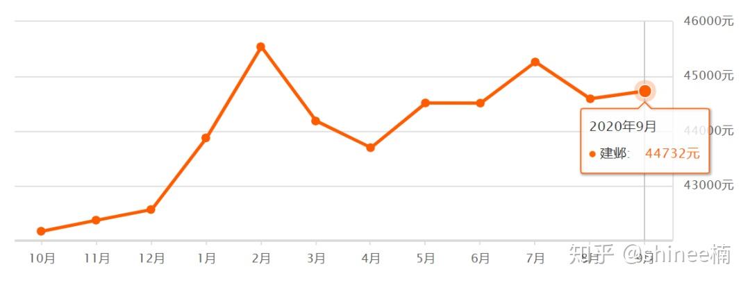 建邺8月成交销售价格 44590 元/m² 环比上月上涨 0.32% ↑, 环比上年上涨 6.12% ↑