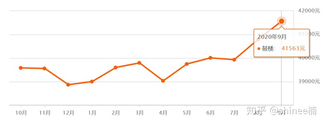 鼓楼8月成交销售价格 40785 元/m² 环比上月上涨 1.91% ↑, 环比上年上涨 5.97% ↑