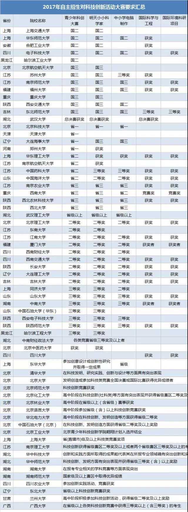 再上看一下自招高档院校承认的那四类大奖: