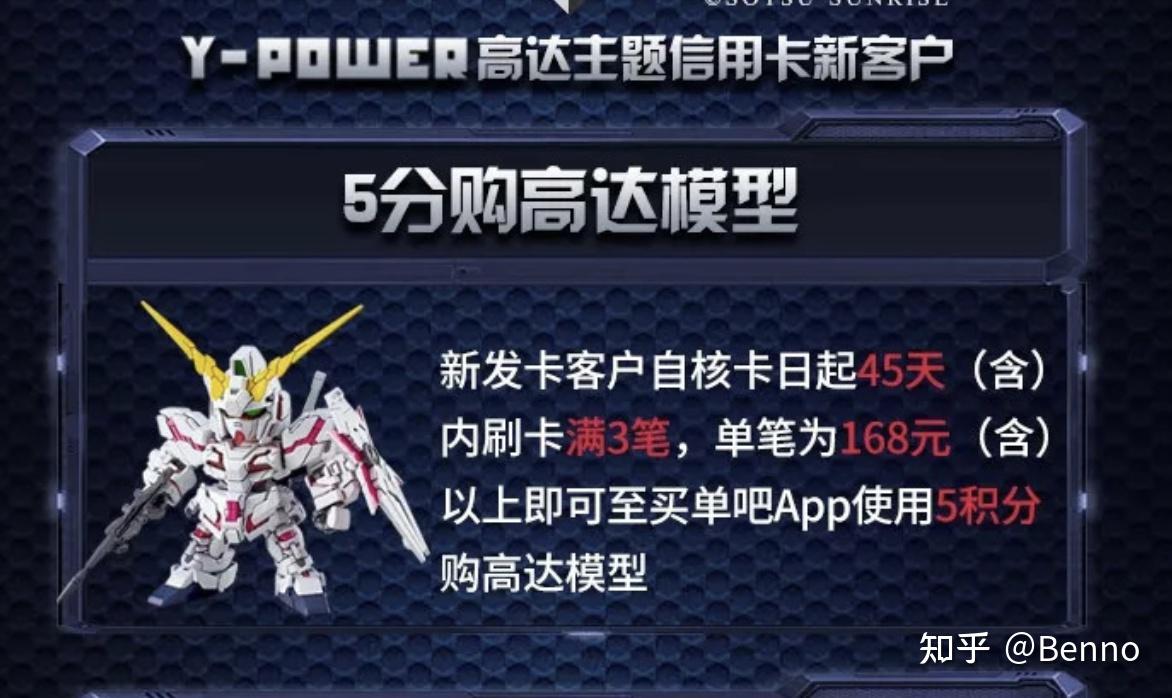 但凡胜利打点手续那款网银的新用户,只要在卡核发日起的45天内,接纳那款网银完成3笔单笔达168元的消费需求,就能够到买单吧APP上用5点数来抢购高达模子。
