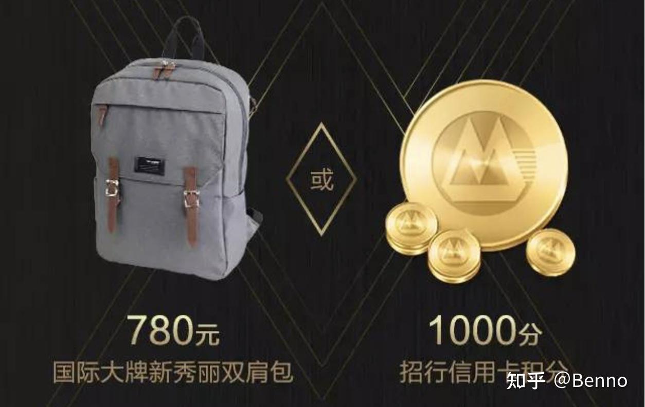 方可通过招商贸易银行掌上生活APP在以下礼物中选择一种停止领取: ① 价值780元新秀丽双肩背包1个 ② 招行1000点数以上礼物客户能够任选其一。
