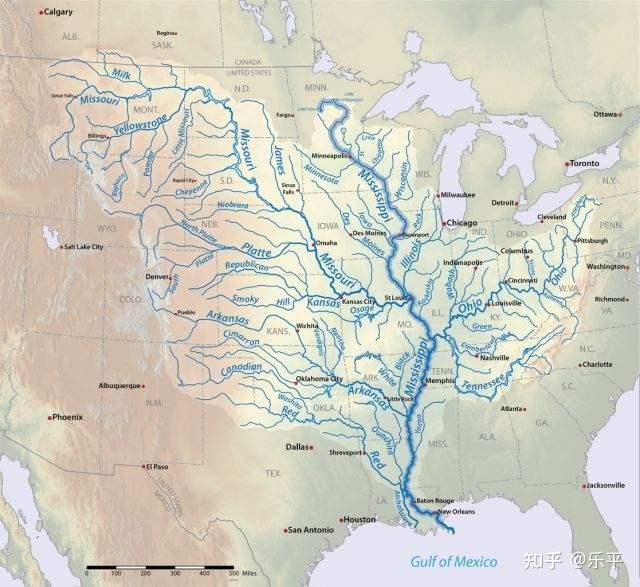 它起源于美国,与密苏里河和杰弗逊河订交。所有河流长达6280公里,最末流入墨西哥湾。