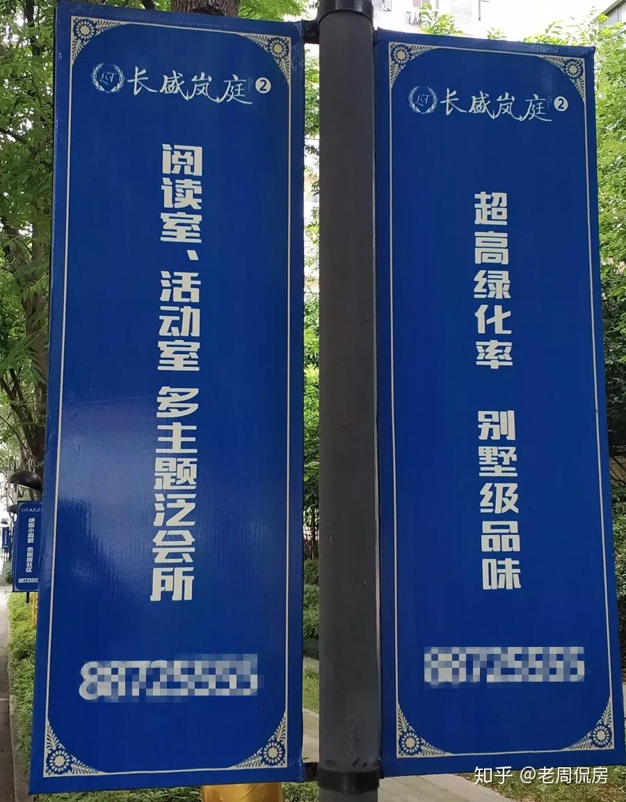 从数据上看,工程项目容积率不高,才2.8,而绿化率到达52%,所以小区内部的灯杆旗上,告白语是那么写的: