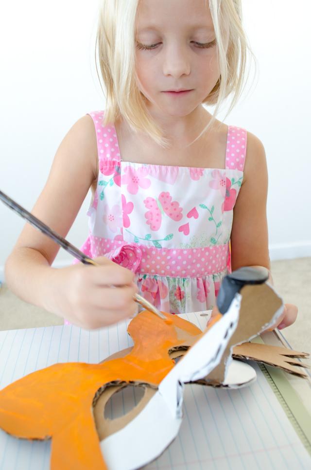 根据模版剪黄色的海棉纸做为蝙蝠侠的标记