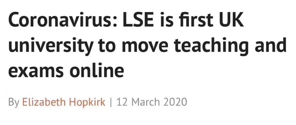 不外在3.13日的时候就收到XX即将线上上课的通知啦!其原因就是我们XX大三办理系的两位学长传染了(非中国人),所以XX出于隆重立场,立即颁布发表了线上教学。讲实,LSE比拟有些XX呈现新冠传染者还对峙线下上课的XX实的好太多了。据说我们XX仍是第一位颁布发表线上教学+线上期末测验的XX呢!(骄傲)!