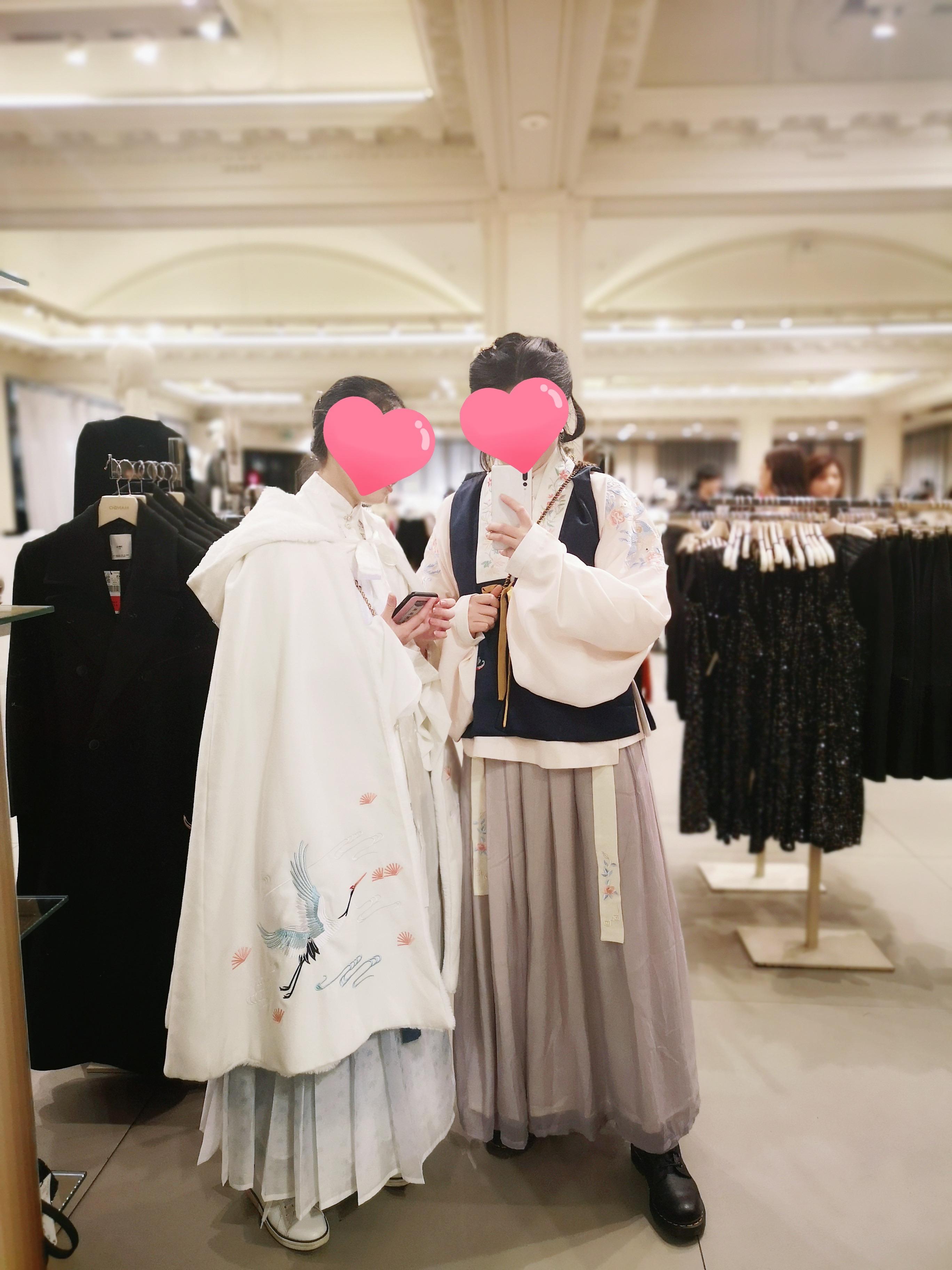 我和我的同袍蜜斯姐~独一让我心里不恬逸的处所就是在参不雅女史箴图的时候,好几名中国旅客在偷拍我们,不意因为展厅内部光线阴暗,所以偷拍的时候误开了闪光灯被我们抓个正着……讲实的,同为中国人,心里实的觉得挺丢人。在国内也穿过汉服出街,也穿过汉服出过外景。实的有好多好多人像做贼一样的斜眼瞅着你,而且偷偷摄影,以至都没有咨询当事人的同意。只能说那些人的本质有待进步了吧!