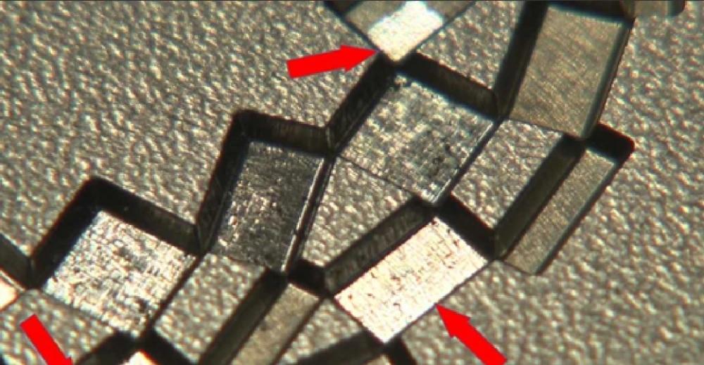 一旦去除藐小的陈迹,加工区域就会发光