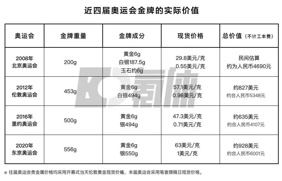 通过近四届北京奥运的金牌总重量与成份,并连系其时贵金属现货价格,为各人停止金牌现实价值清点。若是只计算贵金属的现实价值,几块金牌的价值区间,约在人民币4000元-6000元之间。
