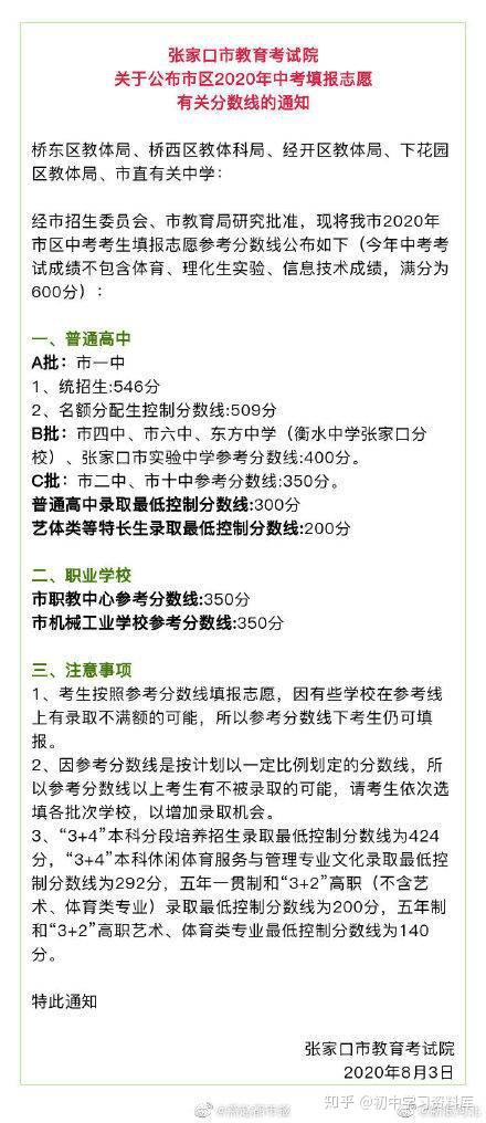 【河北】 石家庄2020年高考阅卷、划线工做已于7月28日全数完毕。经S招生委员会研究确定,现将我S2020年高考各类XX招生登科更高掌控登科线通知如下表所示: