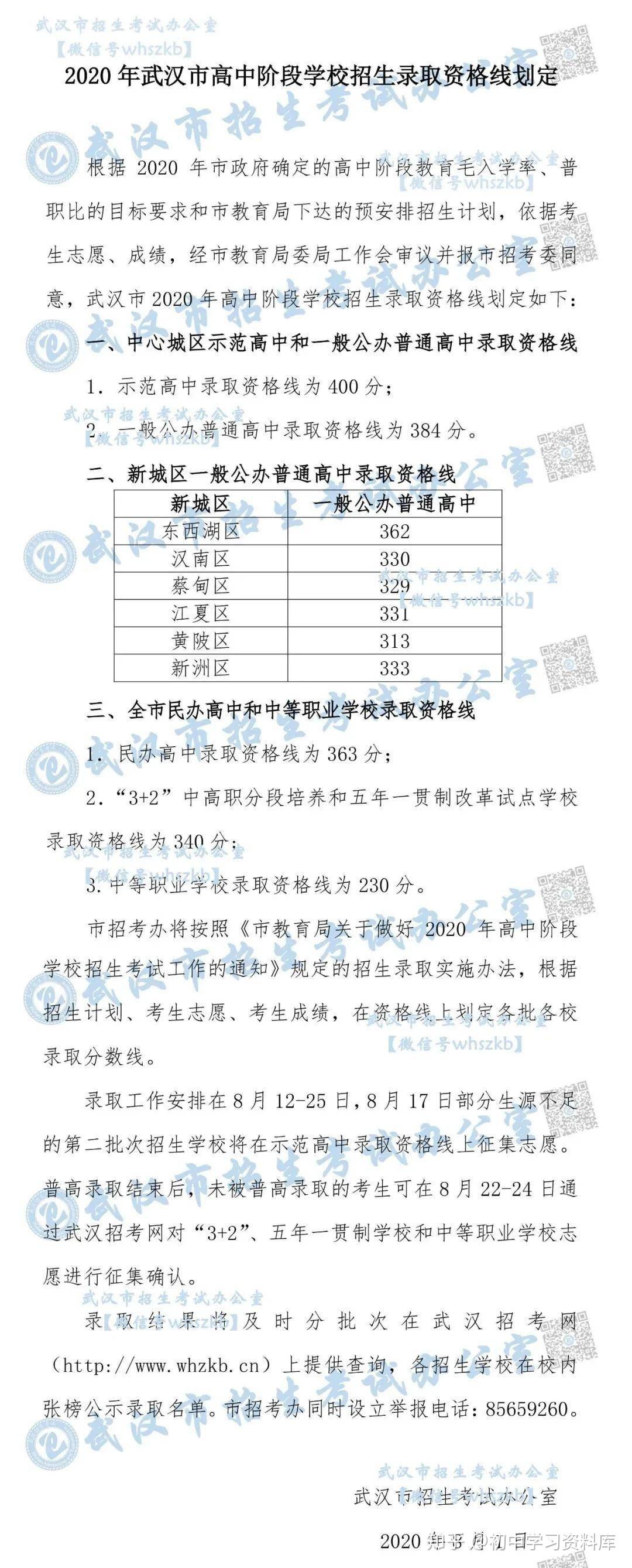 武汉S招考办权势巨子正式发布初中登科资格线:示范初中400分,普高384分。