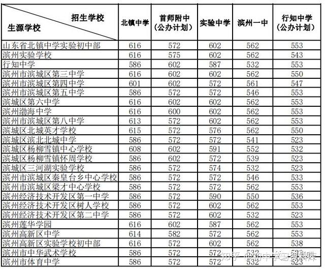 六、滨州S城区五所通俗初中(公办方案,含目标生)更高登科登科线如下表所示表: