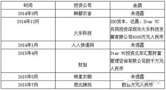 不只有StarVC,范冰冰在2008年以每股3元的价格买入180万股华谊兄弟的股份,后来增持到360万股。2009韶华谊兄弟上市,范冰冰身价暴涨。