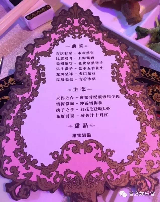 刷了一天的屏,我们来瞧瞧那婚宴的菜单,哇咔咔满桌都是美(liang)味(cai)呢!TFBOYS乃们吃饱了吗?