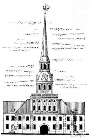↑ 海军部大楼,位于圣彼得堡(和冬宫一左一右共享城市核心地带,涅瓦大街的起点),始建于1704—1706年(和彼得保罗要塞一样做为军事建筑兴建——最后那里是造船坞),然后在1806—1823年被改建为俄罗斯古典主义建筑,和上面那张最后版本复原图判若两人,不,两楼,那即是亚历山大一世重金氪下的持重典雅限时限量版新皮肤:古罗马班师门券洞一样的正门与浮雕、建筑主体四角的多立克柱、中央塔楼上的爱奥尼亚柱(不是一面,是一圈)和白色大理石雕像……